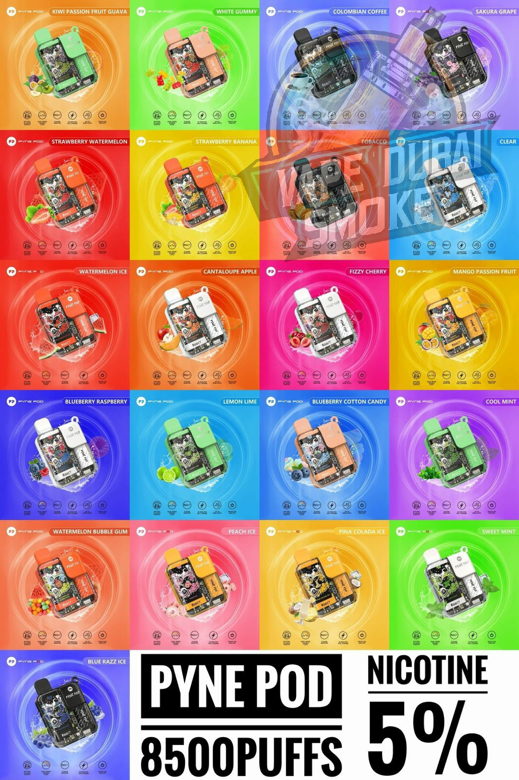 The Pyne Pod Boost comes in a wide range of exciting flavors, including Apple Cantaloupe, Blueberry Raspberry, Sakura Grape, and many more.